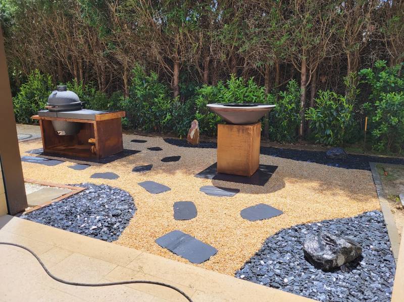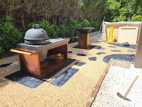 Création d'un espace "barbecue" avec notre partenaire "OFYR", réalisation du sol et de l'aménagement.