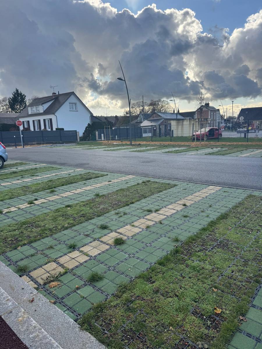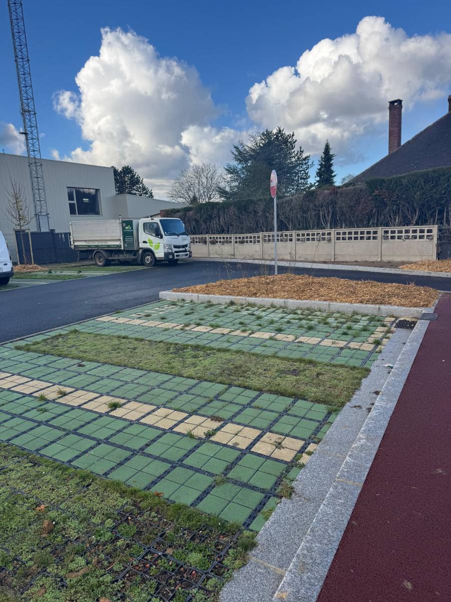 > Plantation, Engazonnement et paillage pour le nouveau parking de Beaumont le Roger