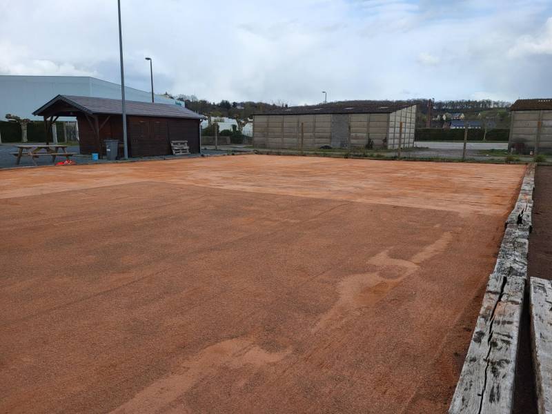 Réfection d'un terrain de pétanque pour une commune dans l'Eure. Nous faisons aussi pour les particuliers. Pour plus de renseignement 02.32.46.35.27